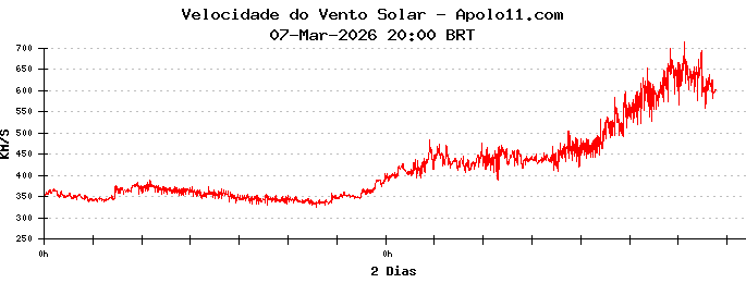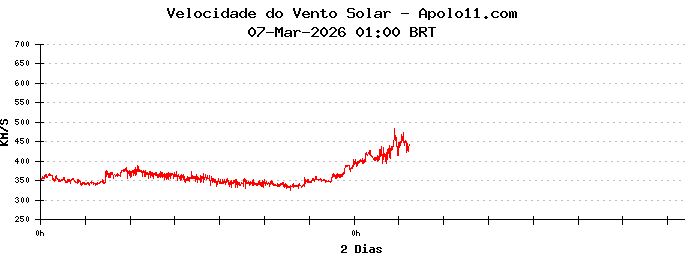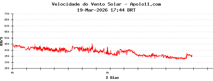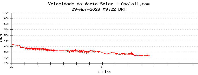 Neste momento, a velocidade do vento solar está oscilando entre 300 e 400 quilômetros por segundo.