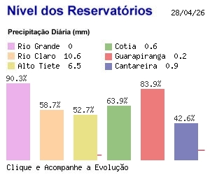 O gráfico à direita é um retrato diário do nível das represas que abastecem a Grande São Paulo.